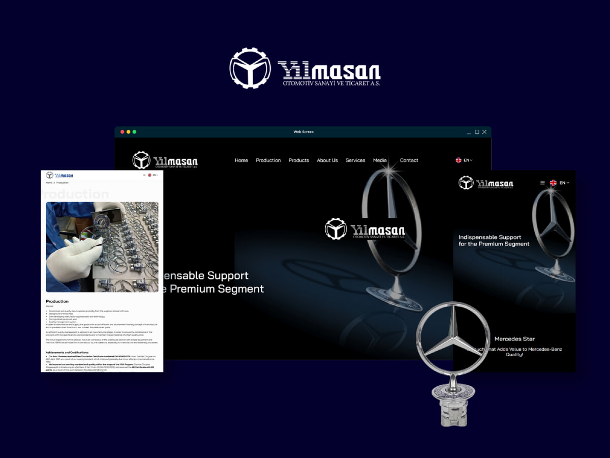 YILMASAN OTOMOTİV projesinde, firmanın prestijini ve sektördeki yerini yansıtan özel özgün tasarım ön planda tutuldu. Hazır kalıpların dışında, YILMASAN'ın marka değerlerini ve kurumsal kimliğini yansıtan, estetik ve modern bir görsel dünya yaratıldı. Bu süreçte uyguladığımız Grafik Tasarım çalışmaları, sitenin her köşesinde firmanın profesyonelliğini hissettirdi. Kurumsal site tasarımı yaklaşımımızla, sitenin sadece güzel görünmesini değil, aynı zamanda kullanıcılar için kolay gezilebilir ve bilgilendirici olmasını sağladık. Teknik altyapıda ise, özel yazılım çözümlerimizle sitenin performansı ve güvenliği en üst seviyeye taşındı. Hızlı yükleme süreleri ve sorunsuz çalışan fonksiyonlar, kullanıcı memnuniyetini artırmanın yanı sıra, arama motorları sıralamaları için de önemlidir.